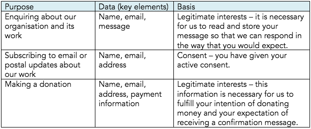 We will only use your data in a manner that is appropriate considering the basis on which that data was collected, as set out in the table above.